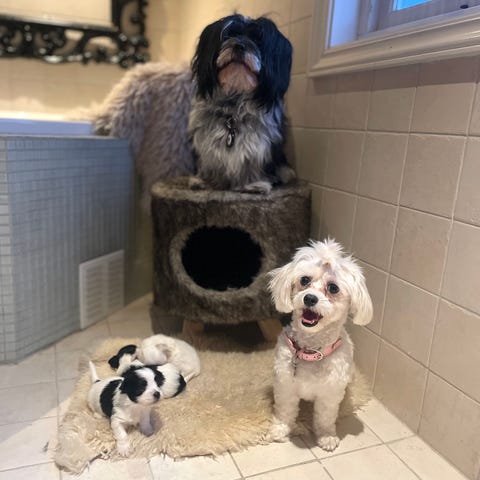 Mammaen er maltipoo og pappaen er toypuddel. Begge to veier i underkant av 3 kg og har både god helse og gemytt.