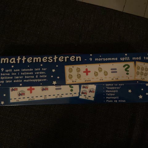 Mattemester. Mattespill med regning for barn. Fikk til jul uten byttelapp. Hadde samme fra før:) uåpnet. Kan sende