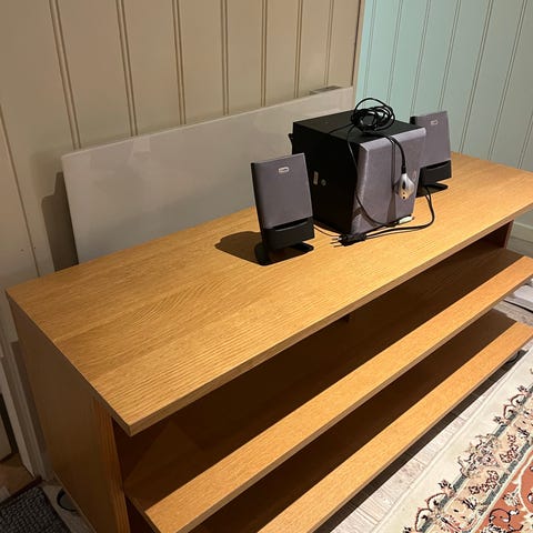 Fin liten og nett tvbenk med god plass i skap.