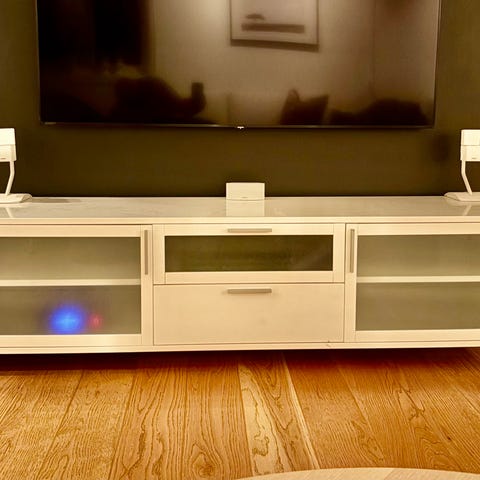 Selger en praktisk og pen TV-benk/skjenk med god oppbevaringsplass. Møbelet har 2 skap og 2 skuffer, perfekt for oppbevaring av elektronikk, spill, fjernkontroller eller annet tilbehør.