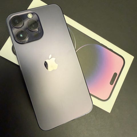 Selger min sorte Iphone 14 Pro Max med 128GB lagringskapasitet.