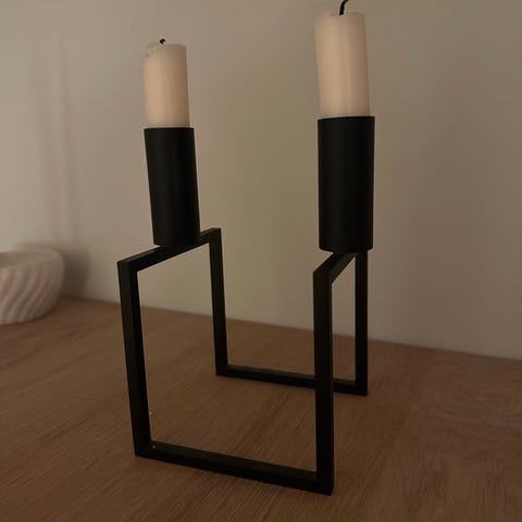 4Skulpturell minimalisme i ditt hjem med denne ikoniske firearmede lysestaken. Med sin rene, sorte finish og arkitektoniske form, er den et statement-piece som uanstrengt smelter inn i det skandinaviske interiøret.