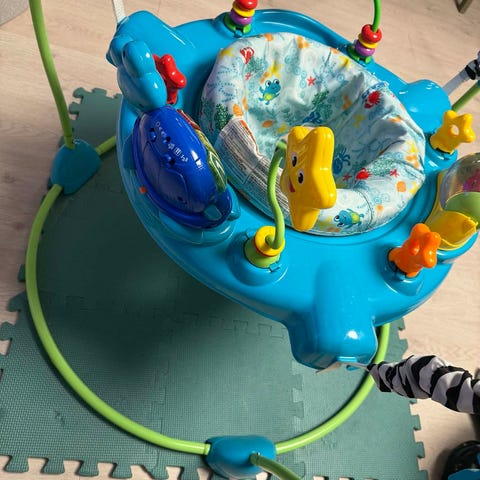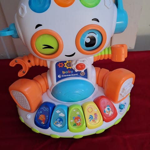 Fisher-Price barneleker inkludert aktivitetsleker, trekkbil, bamse og robot. Leker i ulike farger og materialer, designet for små barn. Inneholder elementer for motorisk utvikling og sensorisk stimulering.
