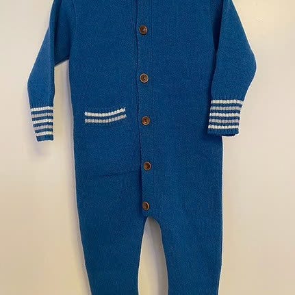 Strikket i merinoull fra Sandnes garn i ulike blåfarger.