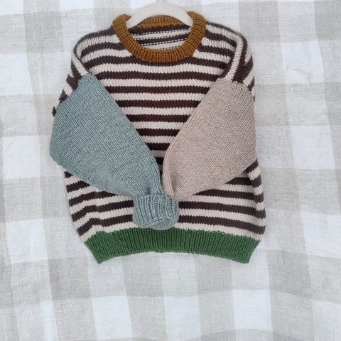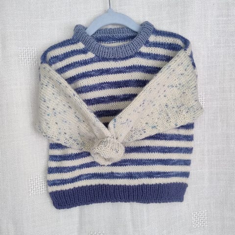 Ubrukt Holger sweater strikket etter oppskrift fra Petite knit i størrelse 1-2år. Størrelsene i oppskriftene hennes er erfaringsmessig litt små, så se målene nedenfor.