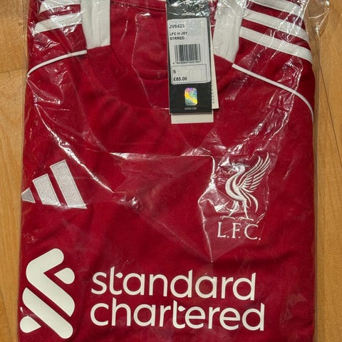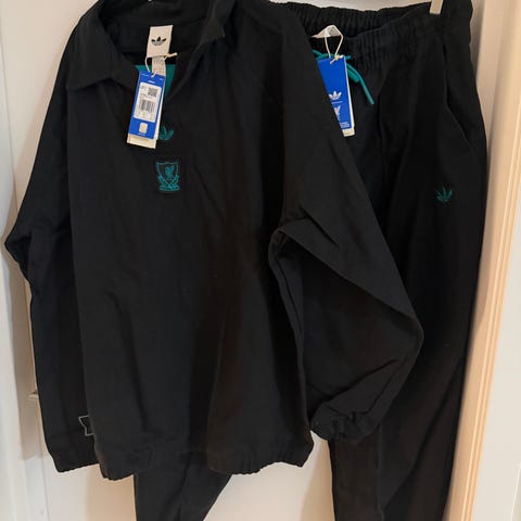 Adidas Liverpool fotballsett for barn i størrelse 164 (13-14 år). Kjøpt i Liverpool 14.des. Sønnen åpnet (og revet av lappen) og prøvde den på julaften men litt liten så ønsker å kjøpe en størrelse større. Har kvittering.