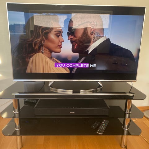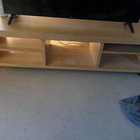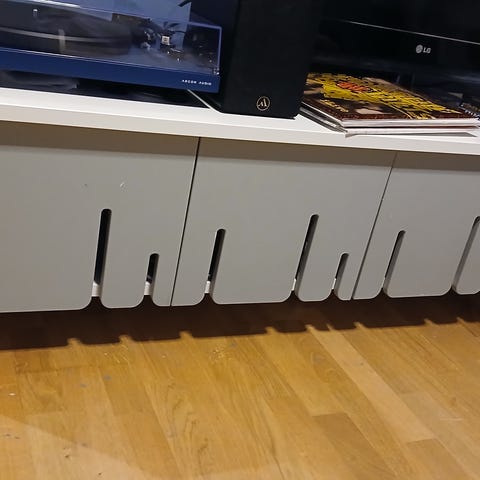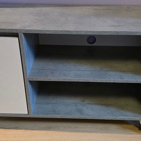 Praktisk åpning bak i midterste hylle for ledninger og mediautstyr.