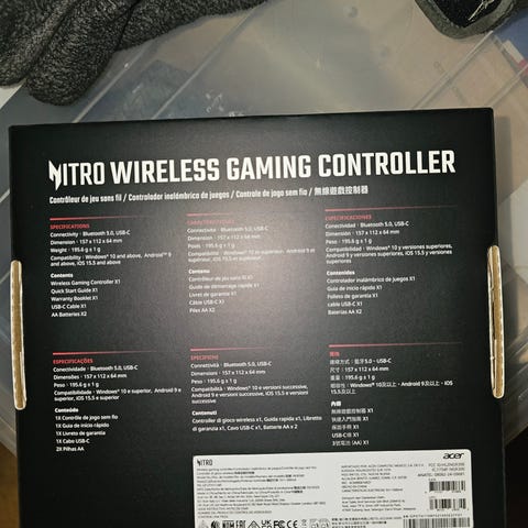 trådløs spillkontroller i svart og rød farge. Kontrolleren har to analoge pinner, D-pad, og knapper for spillkontroll. Designet for komfortabel spilling med ergonomisk grep.