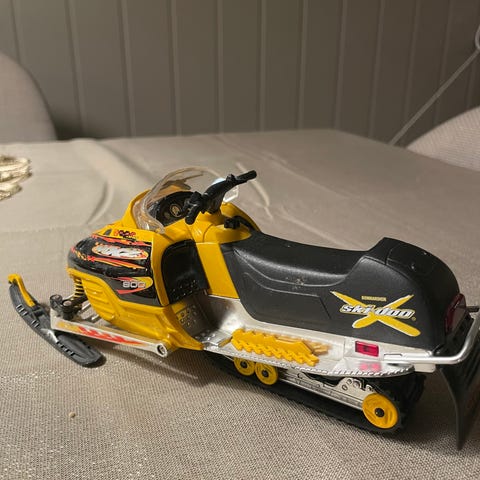 Har stått på bokhylla til pynt hele livet. Har en liten feil, styret på den ene siden er knekt. Ellers hel og fin.