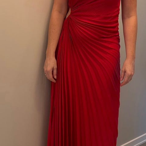 Lekker Mango kjole i størrelse Large, farge svart. Kjolen har en enkel og klassisk design, med en liten «kina-krage», skråknapping, lett innsvinget i livet, egnet for både hverdag og fest. Kjolen er ubrukt, men lappene er avklipt. Mener å huske at den var laget av en bomull/lin/elastan-blanding. Kjolen er svært «tøyelig» og myk. Lengde ca 94 cm.