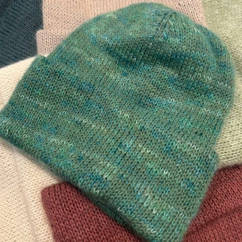 Selger denne nydelige strikkede lua, slow fashion. Har 1 stykk av denne fargekombinasjonen ferdig strikket. 🍏