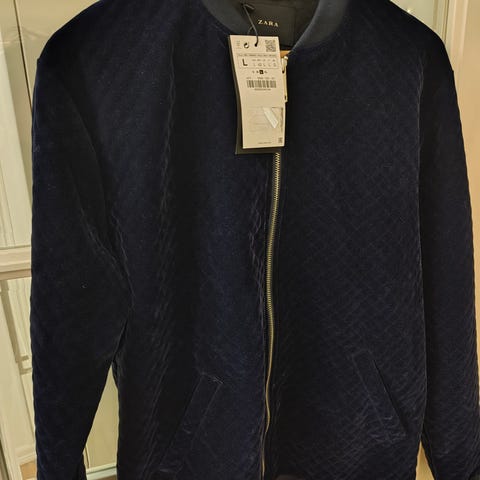 Beskrivelse: Selger en klassisk og moderne bomberjakke fra Zara Man i størrelse Large. Jakken har et minimalistisk design som passer til alt fra jeans til mer formelle bukser.