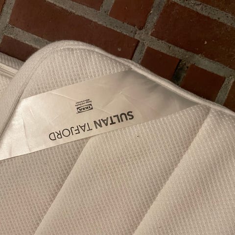 Gir bort Tustina overmadrass fra IKEA. Pent brukt men med litt svettemerker på ene siden.