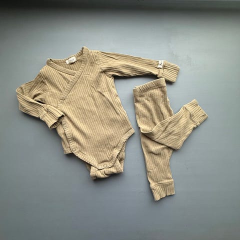 Pent brukt sett fra Soft Gallery, størrelse 74 cm. Settet er lysebrunt med ballongmønster. Like fint til gutt og jente. Ingen anmerkninger. Sender gjerne!