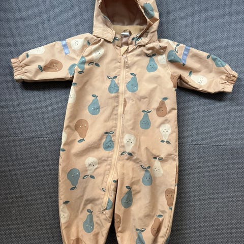 Lindex barnedress i størrelse 74, laget av polyester. Dressen er oransje med mønster av ugler og er designet for unisex bruk. Den har hette og hel kropp dekning, egnet for barn.