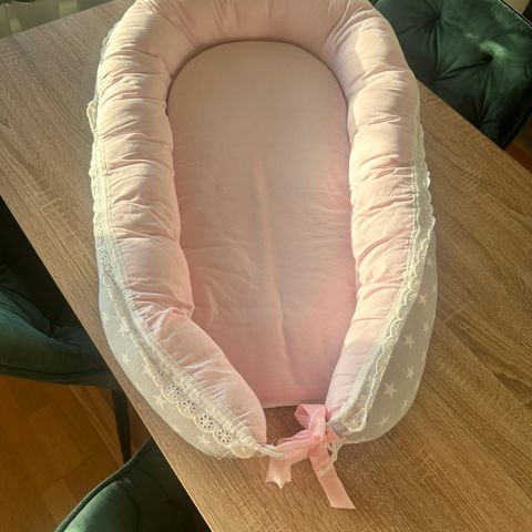 Ytre mål er omtrent 126x67. Bunnen kan heves om sengen skal brukes til baby.