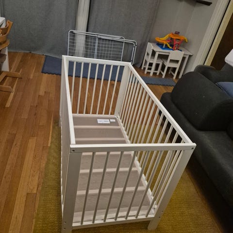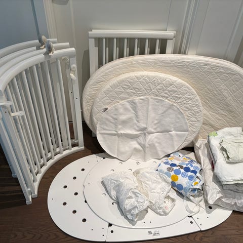 God madrass medfølger om ønskelig. Vi har brukt madrassbeskytter (jeg tror at det alltid er brukt, men kan ikke garantere). Fin kantbeskytter i 100 % bomull kan også medfølge.