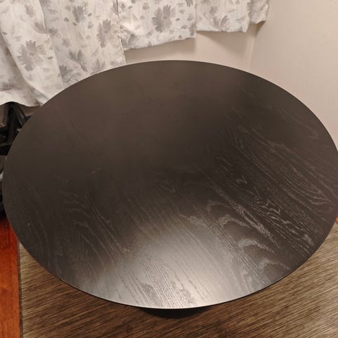 Stilrent IKEA MARIEDAMM rundt spisebord i mørk grå, diameter 105 cm og høyde 75 cm, med kryssben i pulverlakkert stål som gjør det stabilt og robust. Den matte bordplaten er lett å tørke av og har vannavstøtende og fingeravtrykkhindrende overflate, så det tåler mye hverdagsbruk.[ikea +1]