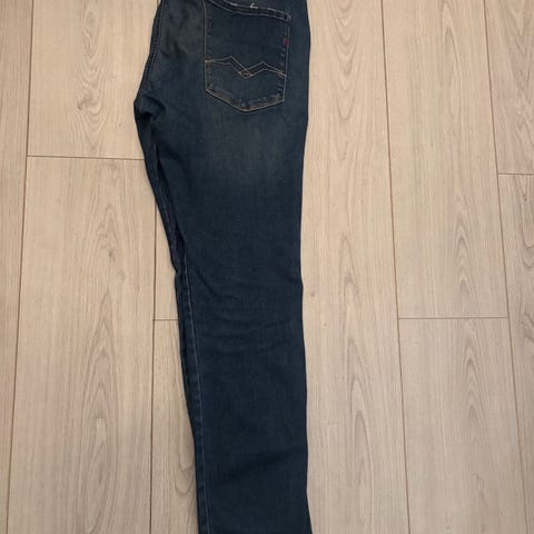 Replay Anbass slimfit Fargen er mørk blå, og størrelsen er W31 i livet og lengde 30. Svært lite og pent brukt.