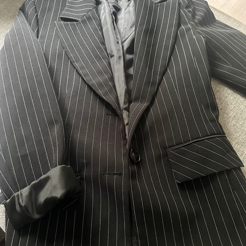Rød Jakke/ blazer i størrelse S. Jakken har knappelukking foran og to lommer på forsiden ( lommene kan ikke åpnes kun for design). Den er designet for kvinner og har en enkel, rødfarget stil.