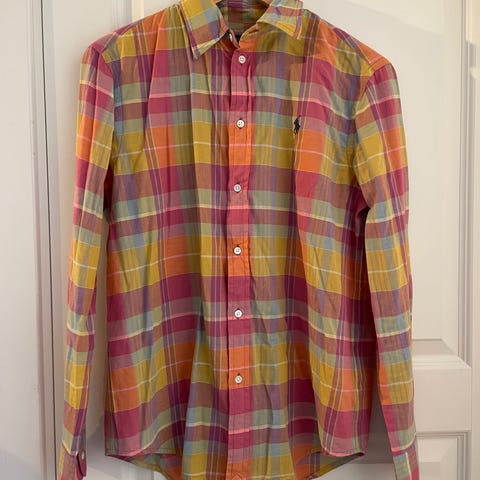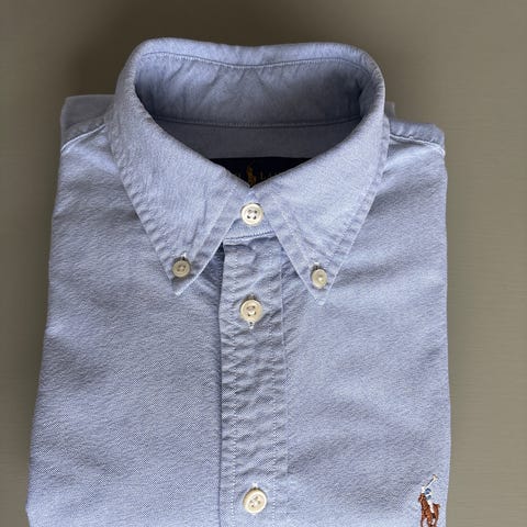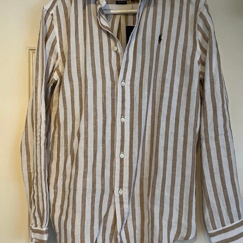 Klassisk, lekker, original RL hvit- og blåstripete langermet linskjorte, kjøpt ny på Follestad i 2025 og aldri vært åpnet/ brukt. Merkelappen sitter fortsatt på. Ingen feil/ mangler.