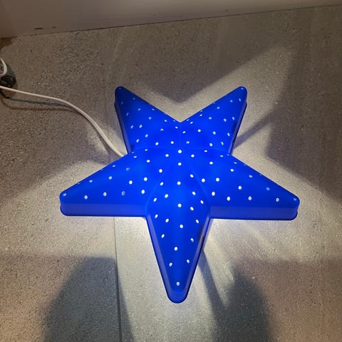 Bredde 18 - høyde 25 cm. Begge ble innkjøpt til barnerom - men aldri tatt i bruk. Den hvite var til gutterommet - den rosa til jenterommet. Lampene har vært i mitt eie siden kjøpet i 1970.