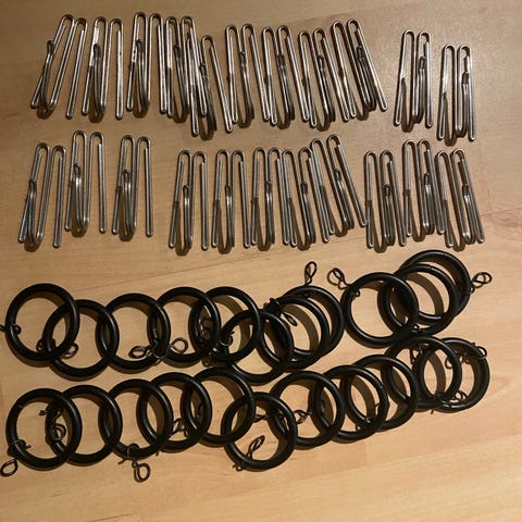 Jobber med et lite hjemmeprosjekt og trenger noen lengder med gardinstenger, trenger også holdere til stengene.