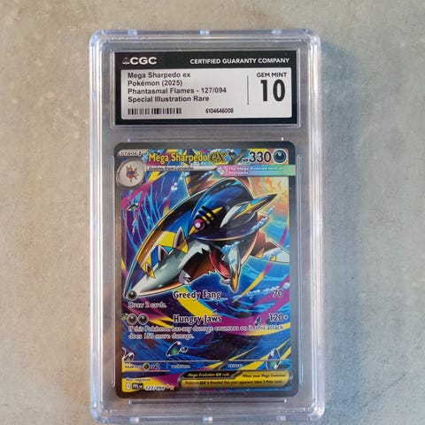 Alle kortene er i samme tilstand som åpnet, ligger dobbelt sleeved og i toploader.