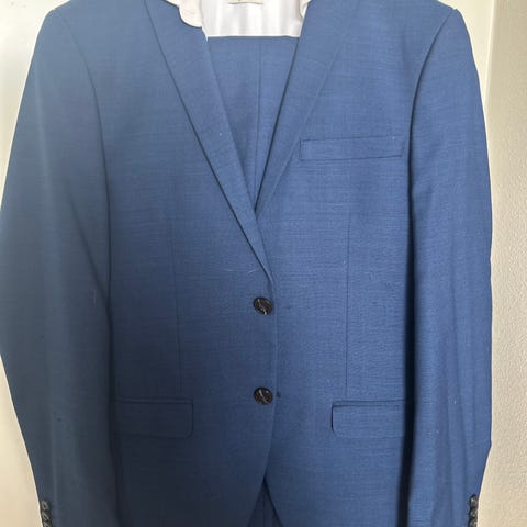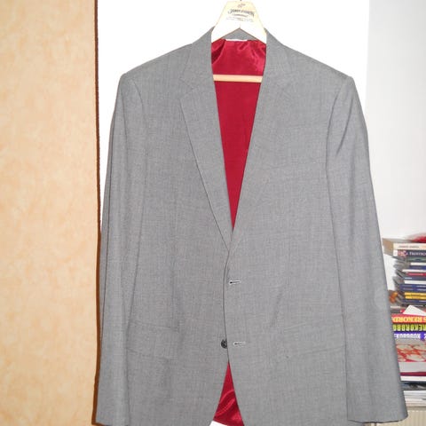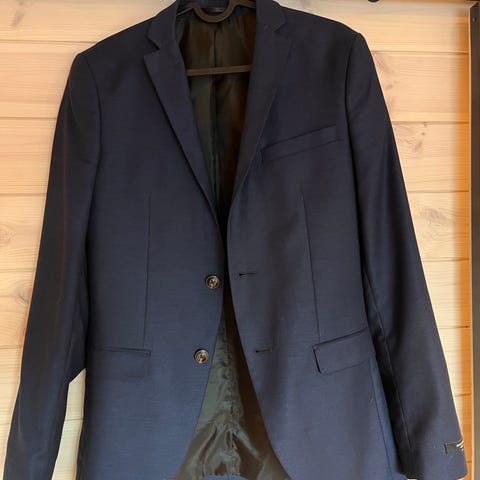 Selger en nesten ubrukt Burton dressjakke med matchende tørkle og 2 slips. Selges da den bare henger i skapet. Fargen er rosaktig som passer veldig fint til mørkeblått. Tørkle er mørkeblått med små rosa prikker. Størrelsen er 42R 107 cm som bør tilsvare Large. Passer fint til meg som er 193 cm høy
