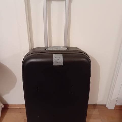 Godt brukt Samsonite koffert. Har tre låser, hvorav den ene låsen er knekt/borte. Hovedlåsen med kode på siden og den oppe fungerer som den skal. Medfølger klespose. Se bilder. Må kunne hentes.