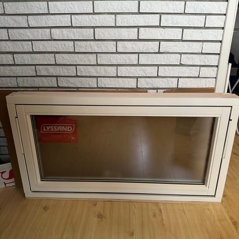 Uldal Vindu med mål 48x59 cm i hvit farge. Vinduet har en ramme i hvitt treverk og er aluminiumskledd. Små hakk i aluminiumen. 2 lags glass. Aldri montert