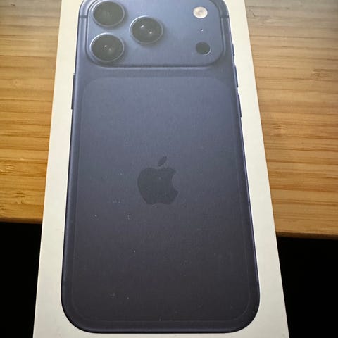 Selger en iPhone 17 Pro Max i fargen dypblå, 512 GB lagring, kjøpt 03.12. Selges grunnet overgang til jobbtelefon.
