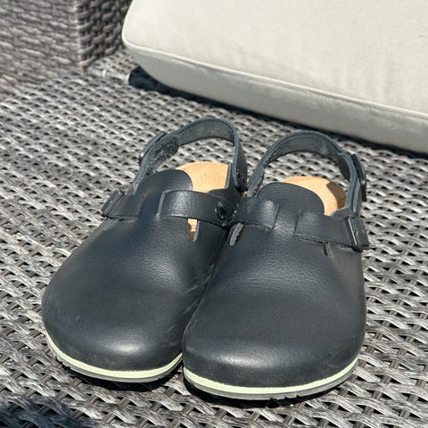 Svarte Birkenstock i størrelse 38, pent brukt. Bredde smal
