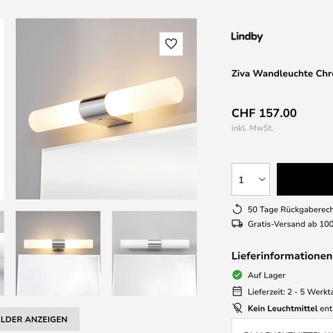 Baderomslampe - så vidt brukt (Nypris 2.299,-)