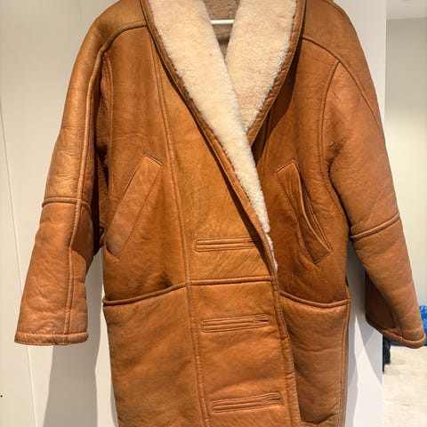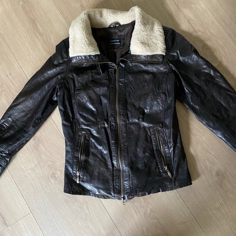 Jakken er kjøpt på Moi Skinnutsalg og er av merke Anet. Brukt bare to ganger og fremstår som ny. Er mørk brun, litt vanskelig å få fram farge på bilde.