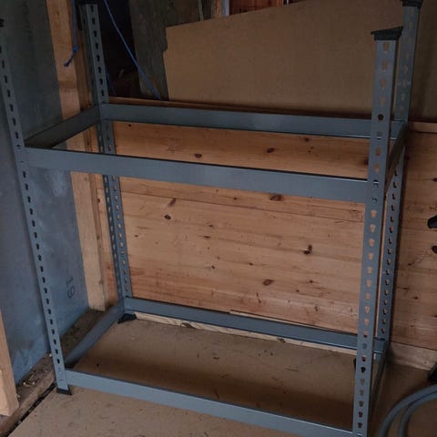 Grei vogn for oppbevaring av dekk. Litt rust nede. Sendes ikke.