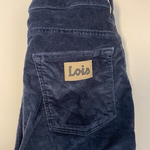 Lois bukser i brun cordfløyel, størrelse L for damer. Laget av materiale som gir komfort og holdbarhet. Passer til hverdagsbruk og ulike anledninger.