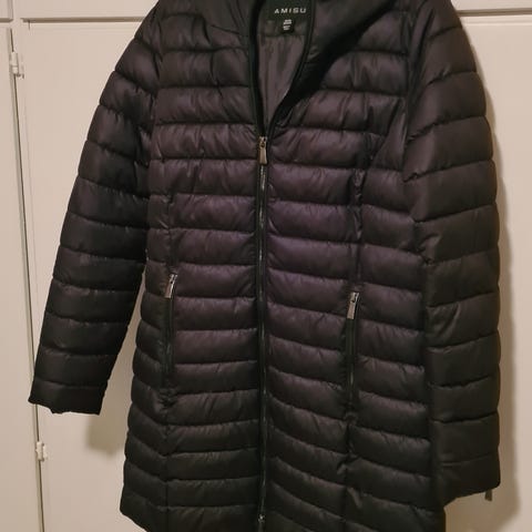 AMISU Annet yttertøy for kvinner i størrelse S. Jakken er grønn og laget av polyester. Den har quiltet design med glidelåslommer og glidelåsdetaljer på ermene.