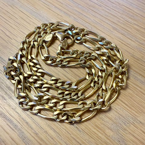 Roségull 14 karat smykke med hvite gull detaljer i mønstret. Ca 53 cm langt. Vekt se bilde.