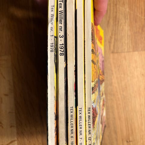 Samling av Tex Willer tegneserier med flere utgaver. Inneholder ulike volum og historier i serien. Passer for samlere og lesere av tegneserier.