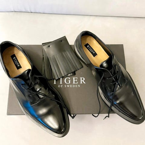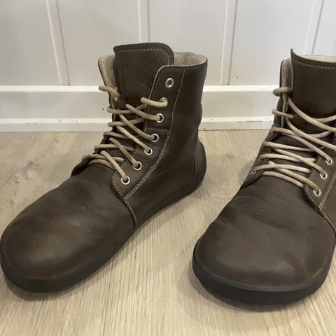 Håndlagede barfot sko. Nesten nye, brukt ca. 1/2 t.