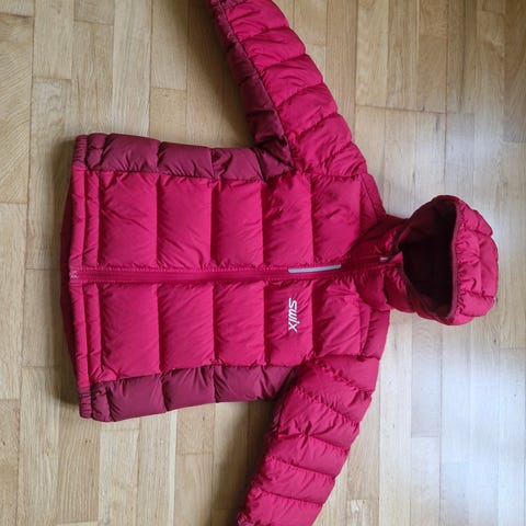 Swix Junior HEMING dunjakke i størrelse 152. Jakken er blå og laget med dun som isolasjonsmateriale, egnet for kalde værforhold.