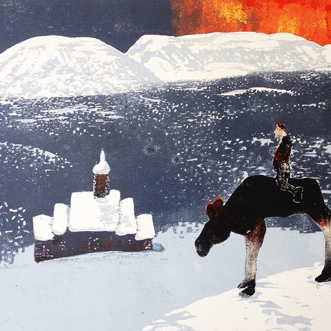 60 x 66 cm (rammemål) , 48 x 43,5 cm (bildet)