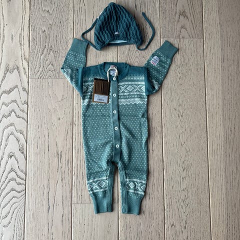 Helt ny heldress fra marius, votter i ull og lue i bomull str 68