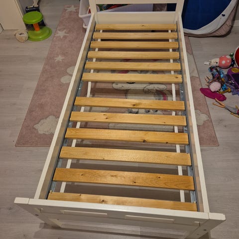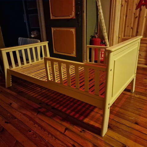 Kritter IKEA juniorseng designet for barn. Sengen har en størrelse som passer til juniorbruk, med solide materialer og hvit finish. Passer godt til barn som trenger en overgangsseng mellom sprinkelseng og vanlig seng.