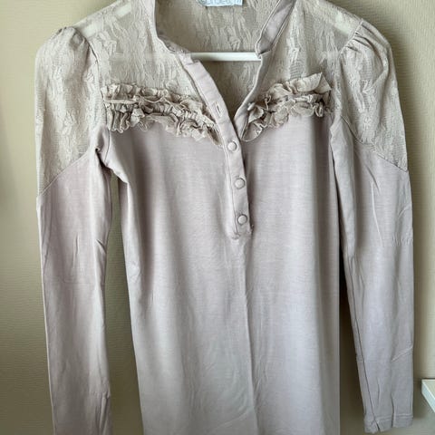 Nydelig vintage topp med brokadestoff, opprinnelig kjøpt i London på 80tallet. Den er skikkelig innsvingt i livet med utsving over hoftene. Hadde også vært nydelig på en brud med et skjørt til.