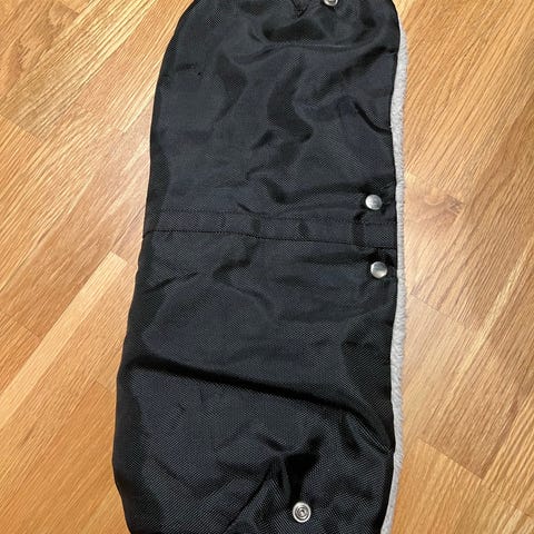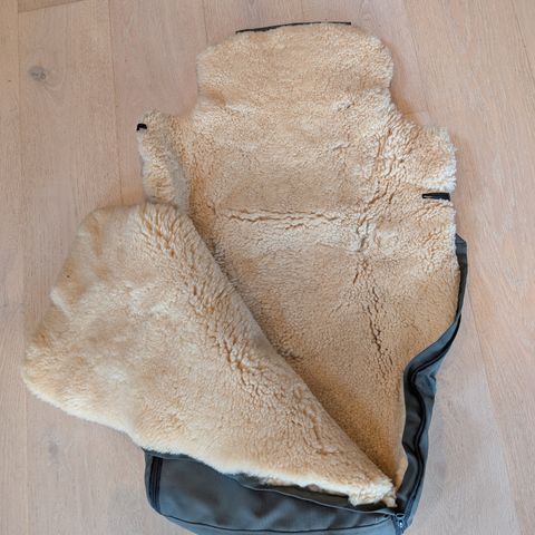 God og varm vognpose med god størrelse. Innside av lammeull, utside av vannavvisende stoff som kan tørkes av. Overdelen kan tas av. Det er åpning for seler i ryggen.