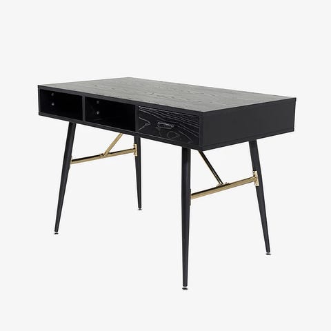 SOFT LINE Skrivebord smalt med 2 skuffer. Svart MDF og ben 21,5 cm i eik