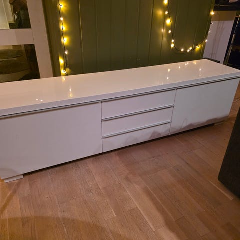 Tv benk pent brukt 180 cm med 2 dype skuffer og 4 hyller for eventuelle video anlegg