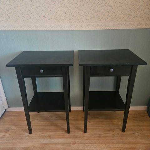 2 stk brunsvarte nattbord fra Hemnes selges for 500,- De er brukt men har mye å tilby.